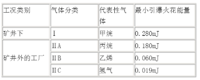 ④、按爆炸性氣體環境的最大實驗安全間隙或最小點燃電流分為ABC三級