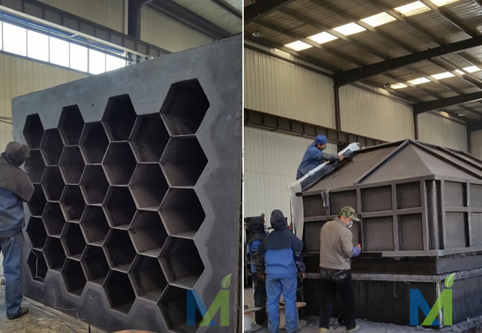 工人正在對濕式靜電除塵器陽極模塊進行打磨